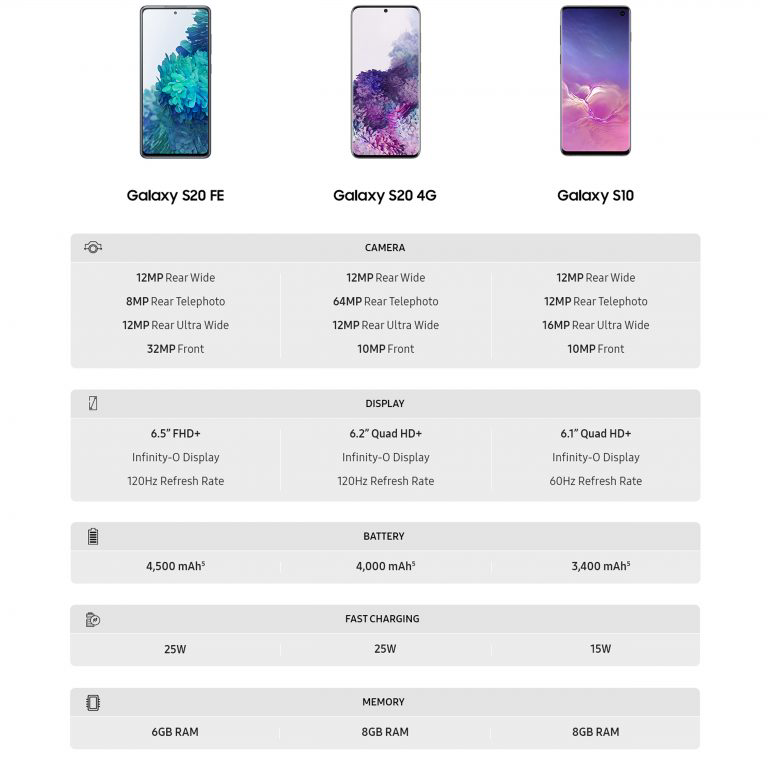 How does the new Galaxy S20 FE compare with the likes of the S10 or the S20 4G? Here’s a quick comparison to help you decide:
