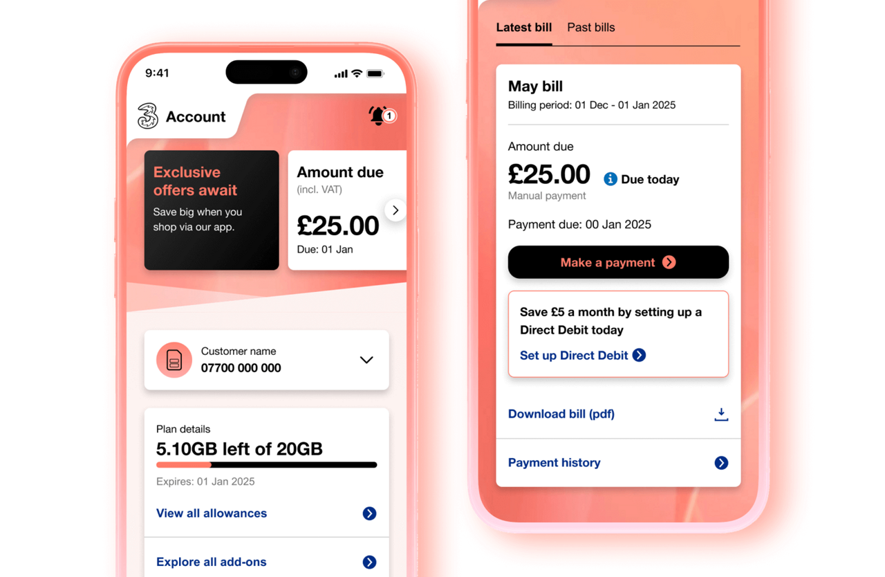 Manage your account easily on the Three app.